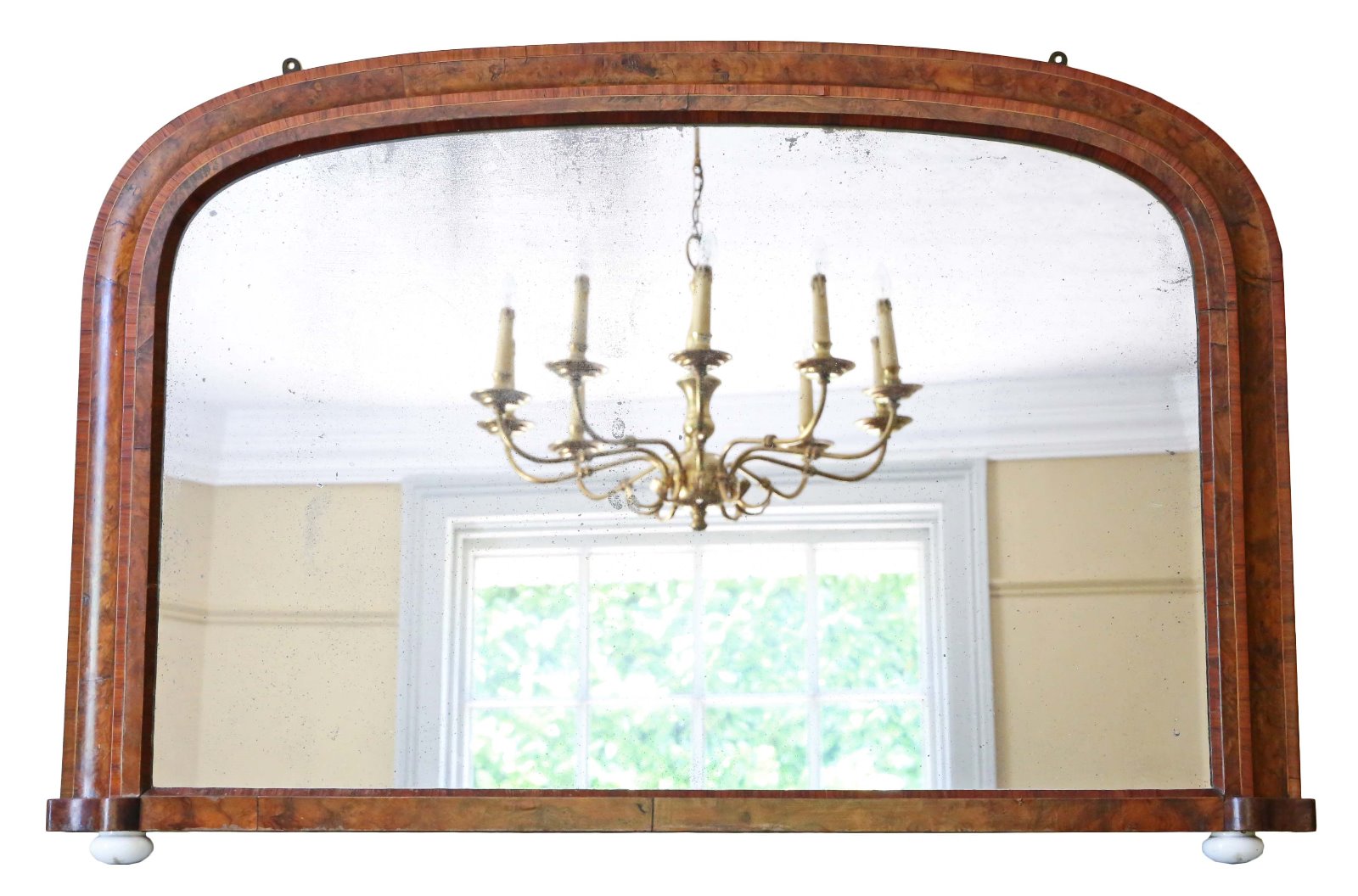 Victorian Burr Walnut Wall Mirror Overmantle C.1890