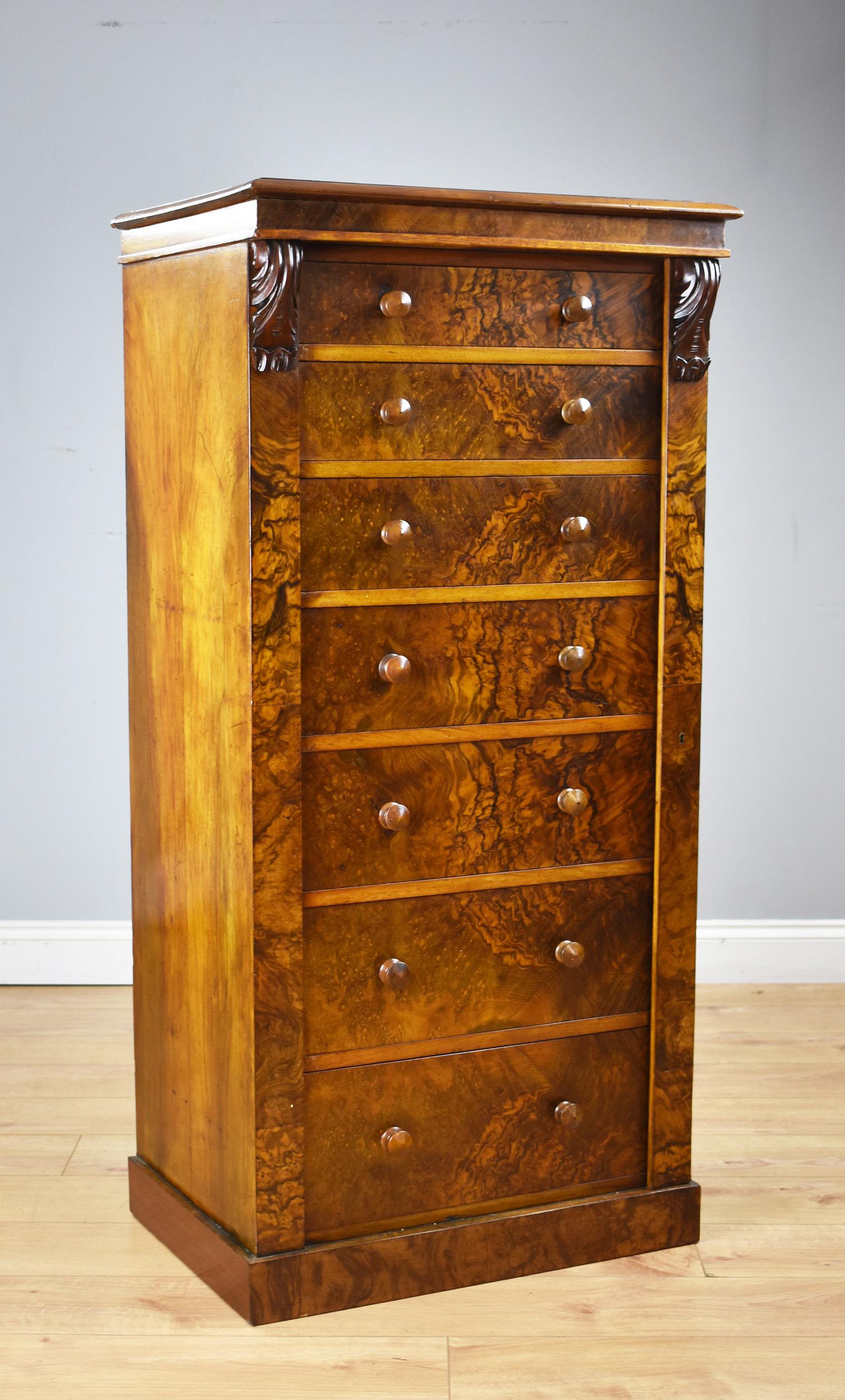 Victorian Burr Walnut Wellington Chest