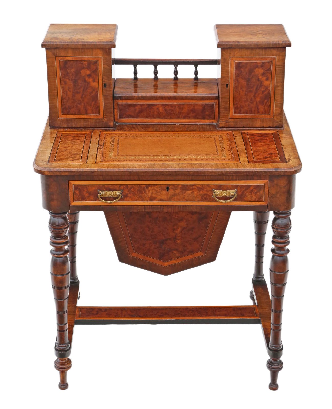 Victorian Burr Walnut Work Side Sewing Writing Table Box c.1890