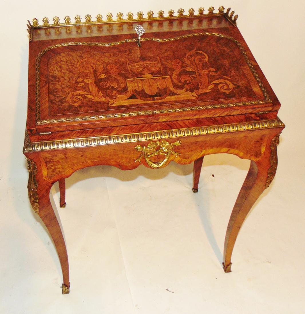 Victorian Burr Yew, Kingwood & Marquetry Bureau de dame