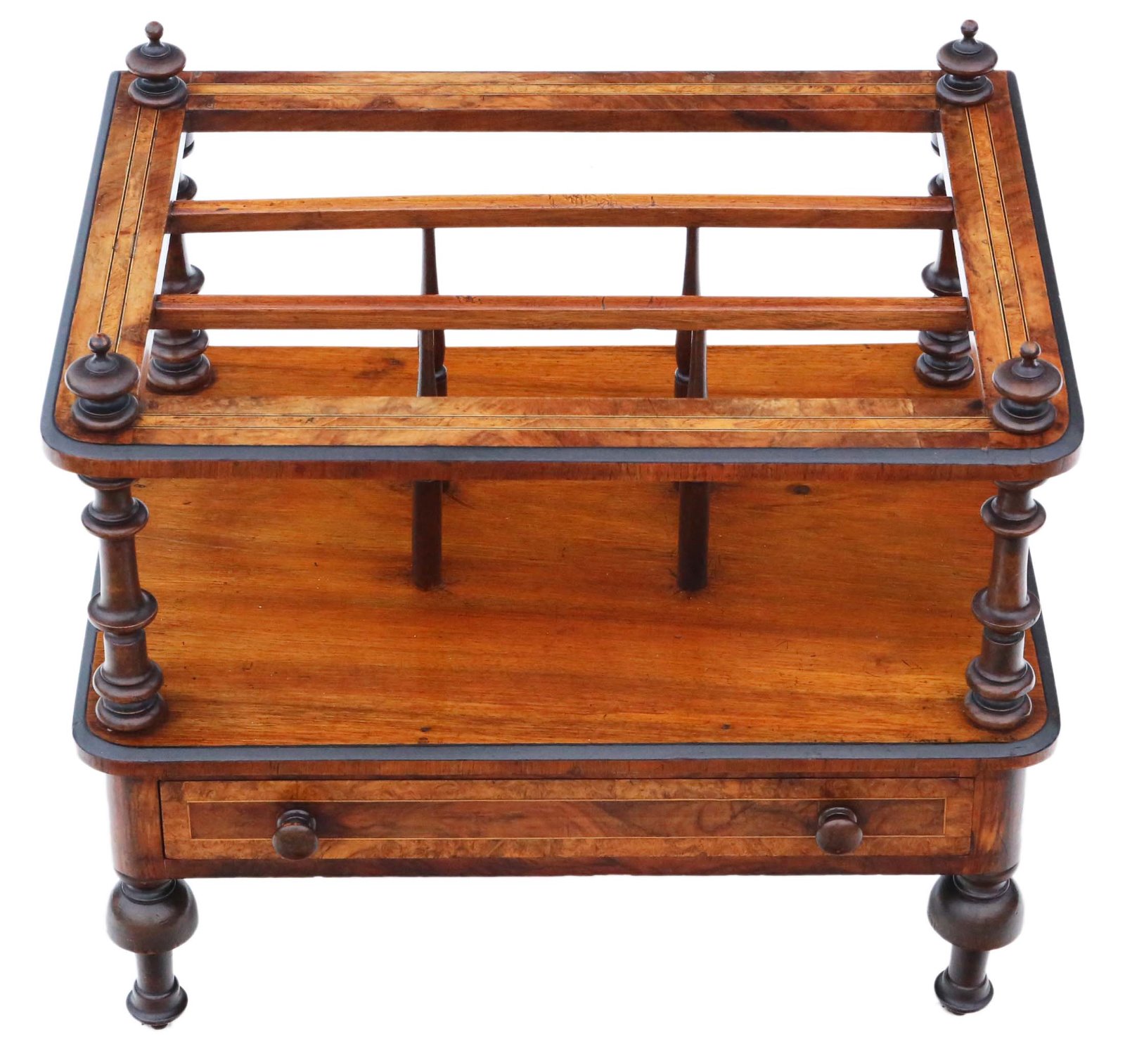 Victorian C1870 Inlaid Burr Walnut Canterbury Whatnot