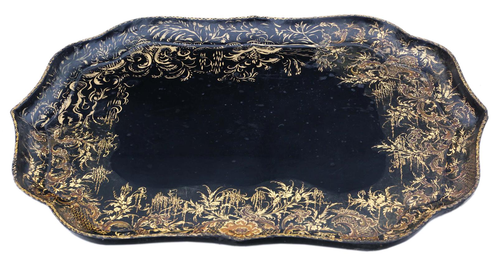 Victorian c.1880 Black Lacquer Papier-mâché Tray