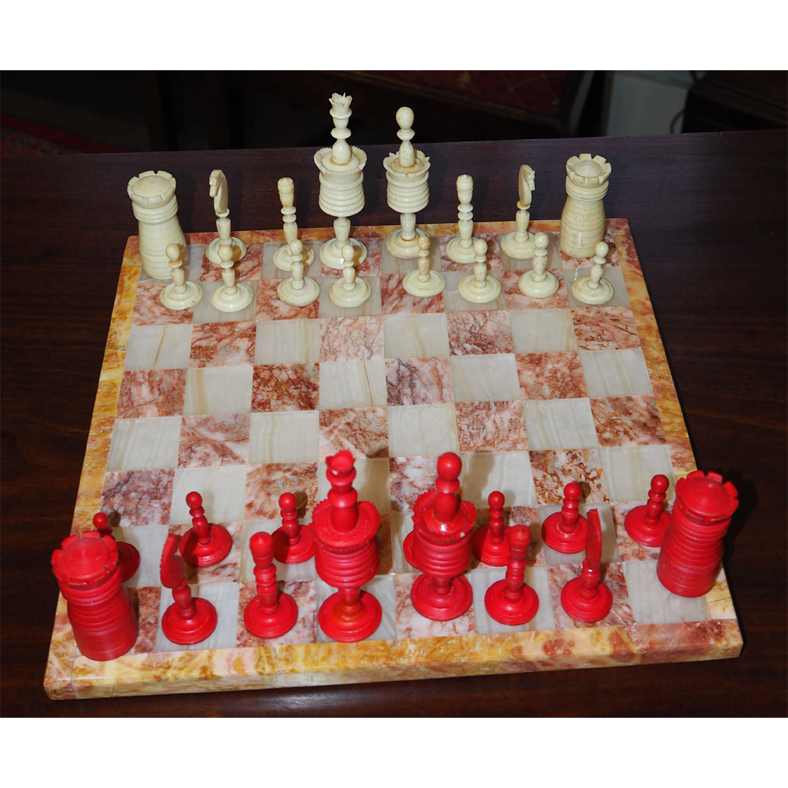 Victorian Carved Bone Chess Set with Board c.1870 (1 of 1)