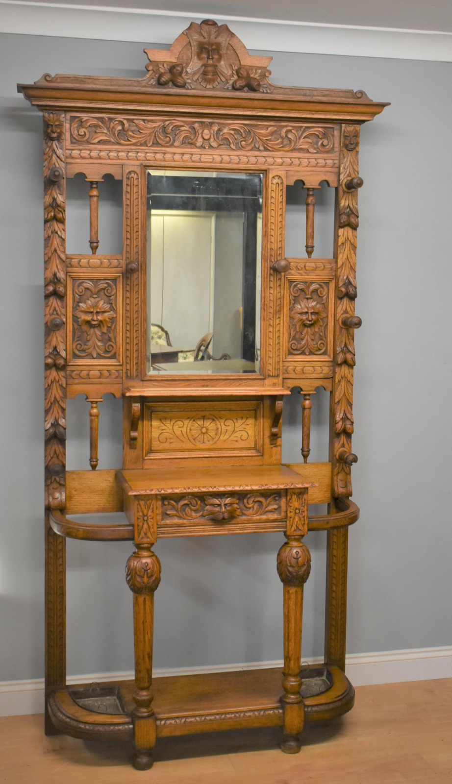 Victorian Carved Golden Oak Green Man Hallstand