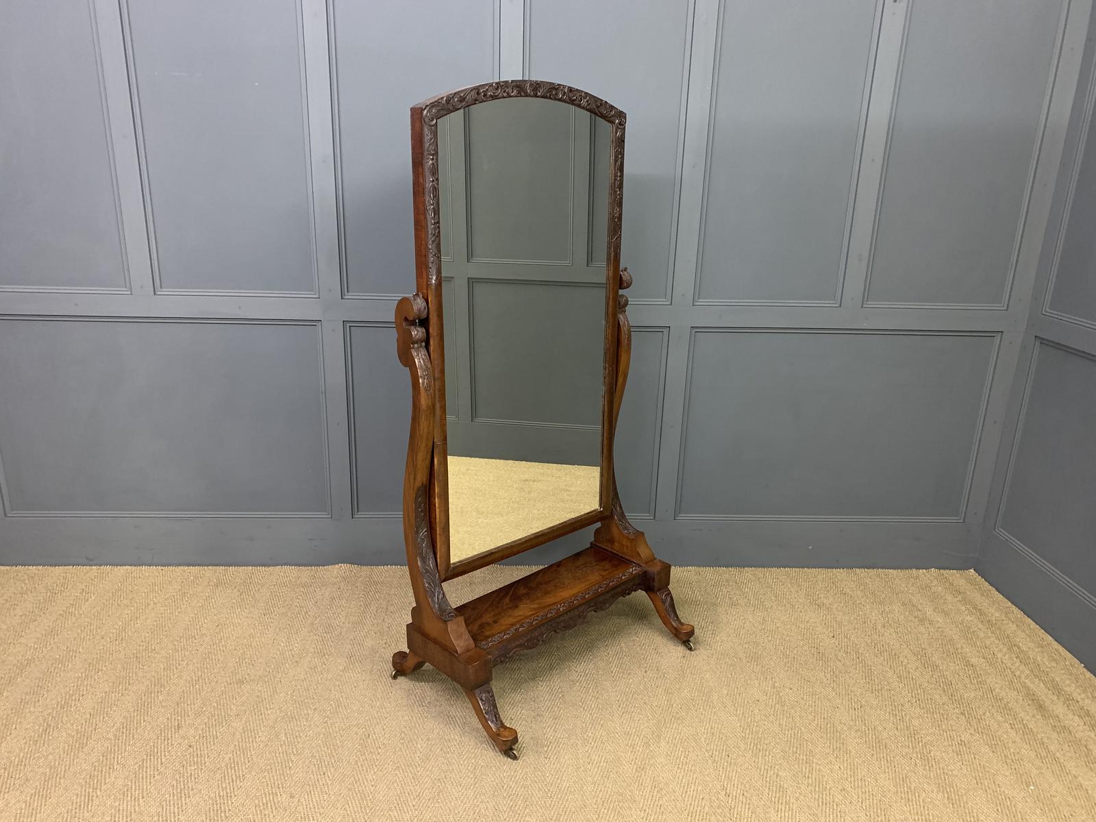 Victorian Carved Mahogany Cheval Mirror (1 of 11)