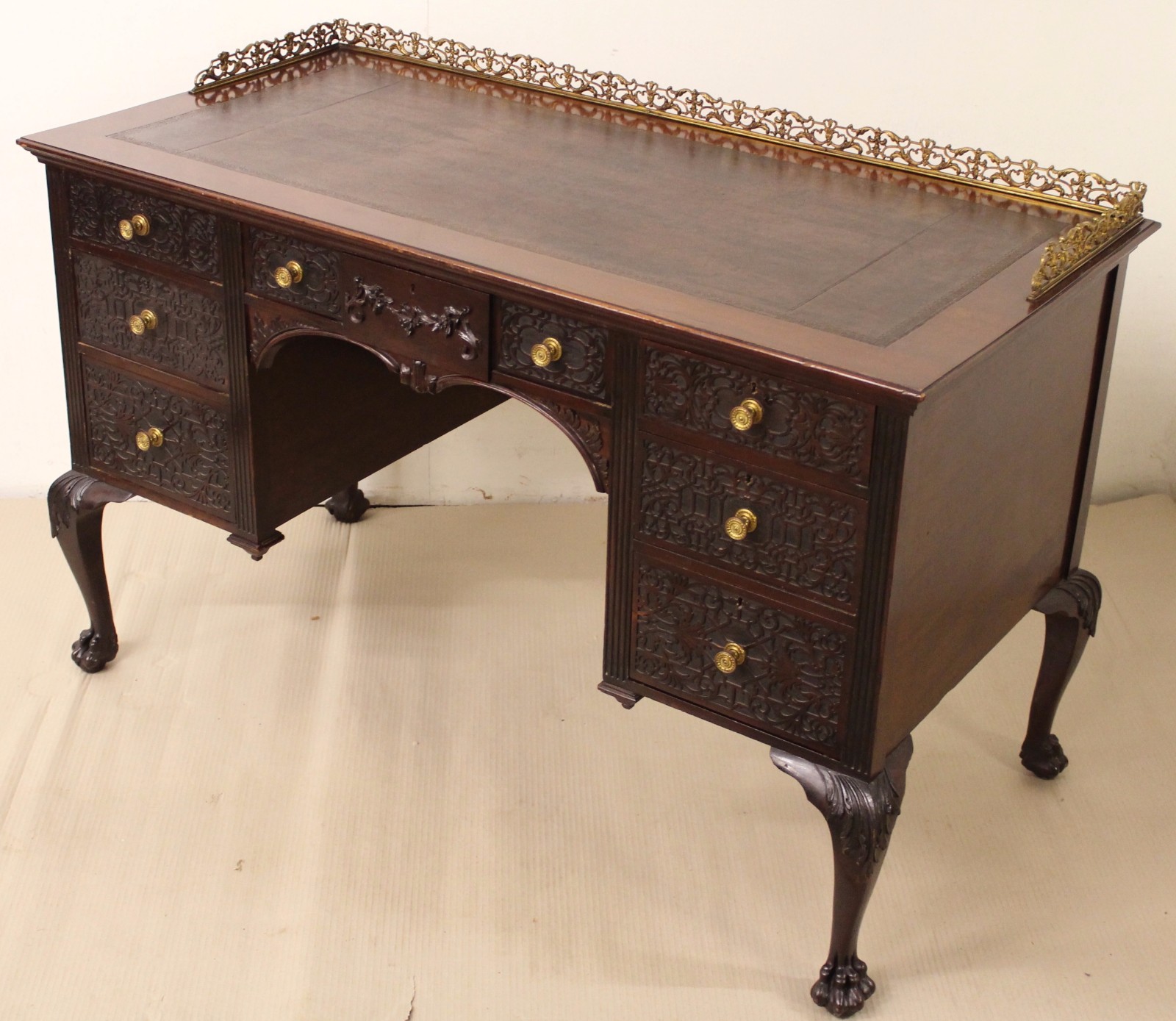 Victorian Carved Mahogany Writing Desk c.1890 (1 of 1)