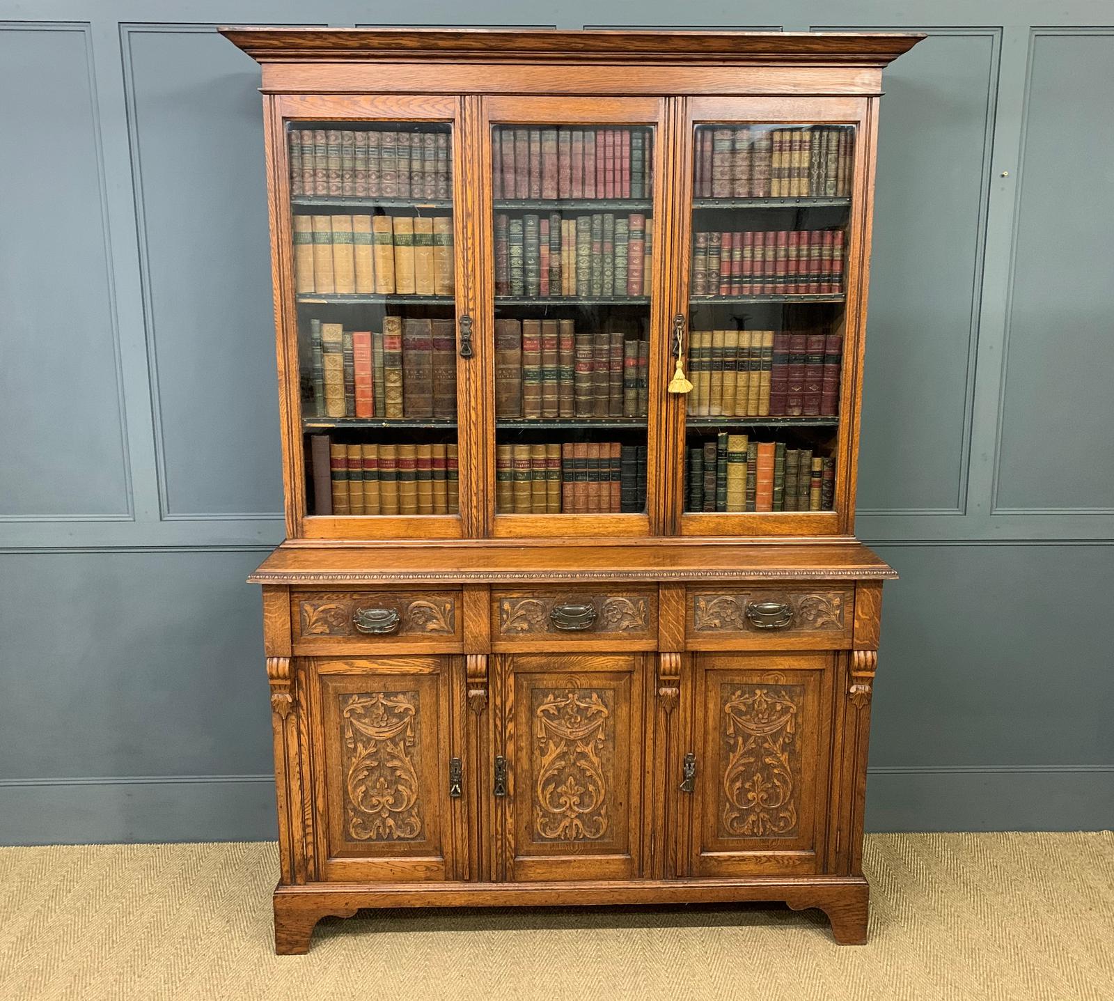 Victorian Carved Oak 3 Door Bookcase