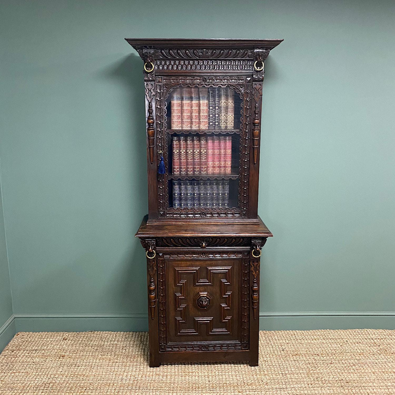 Victorian Carved Oak Antique Bookcase