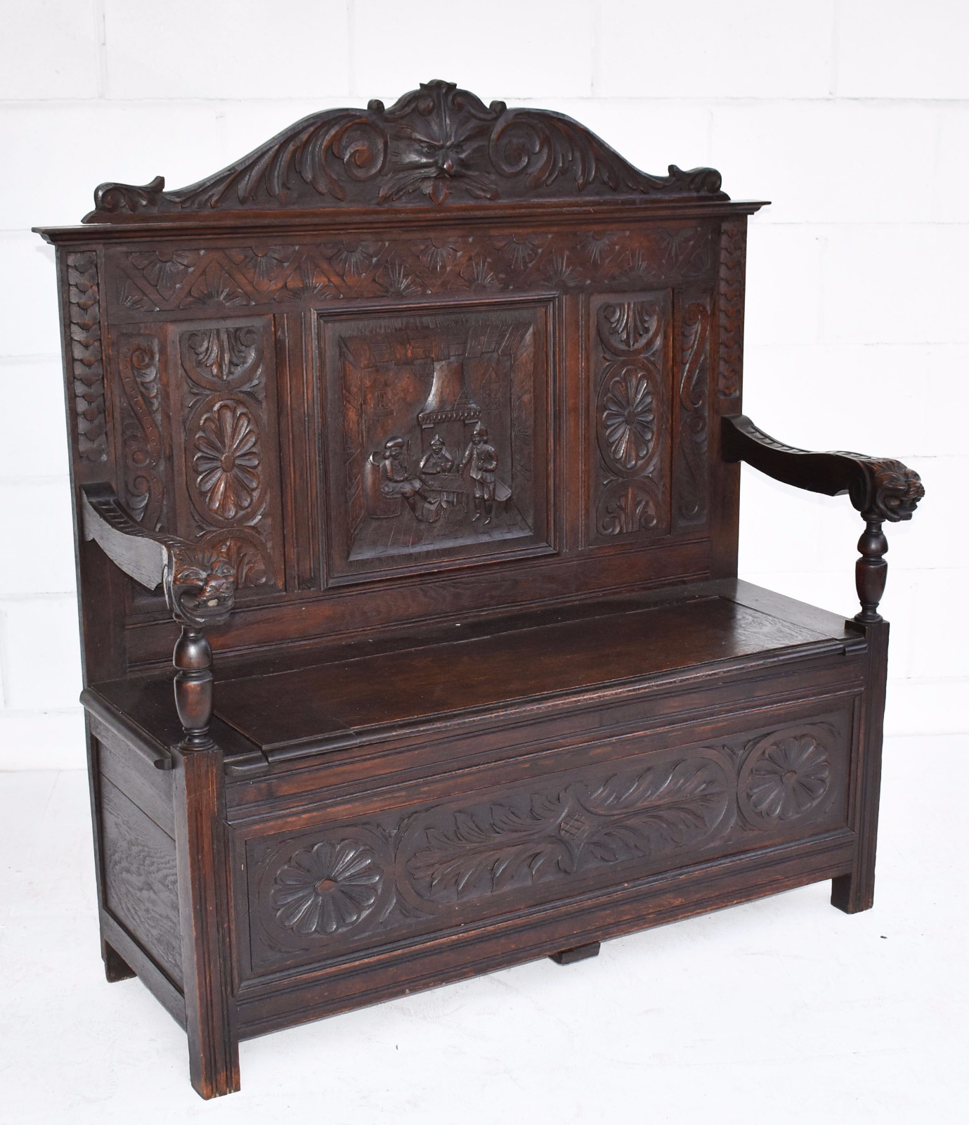 Victorian Carved Oak Bench