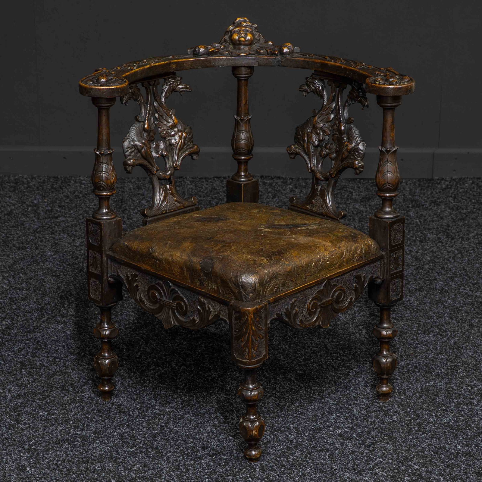 Victorian Carved Oak Corner Chair