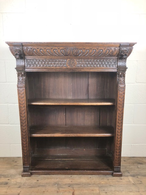 Victorian Carved Oak Gothic Style Open Bookcase (1 of 1)