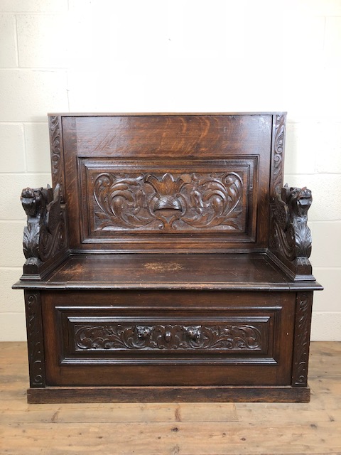 Victorian Carved Oak Gothic Style Settle (1 of 1)