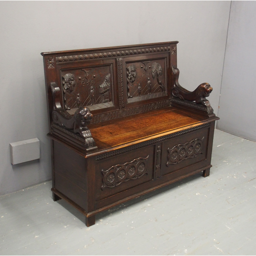 Victorian Carved Oak Hall Bench (1 of 1)