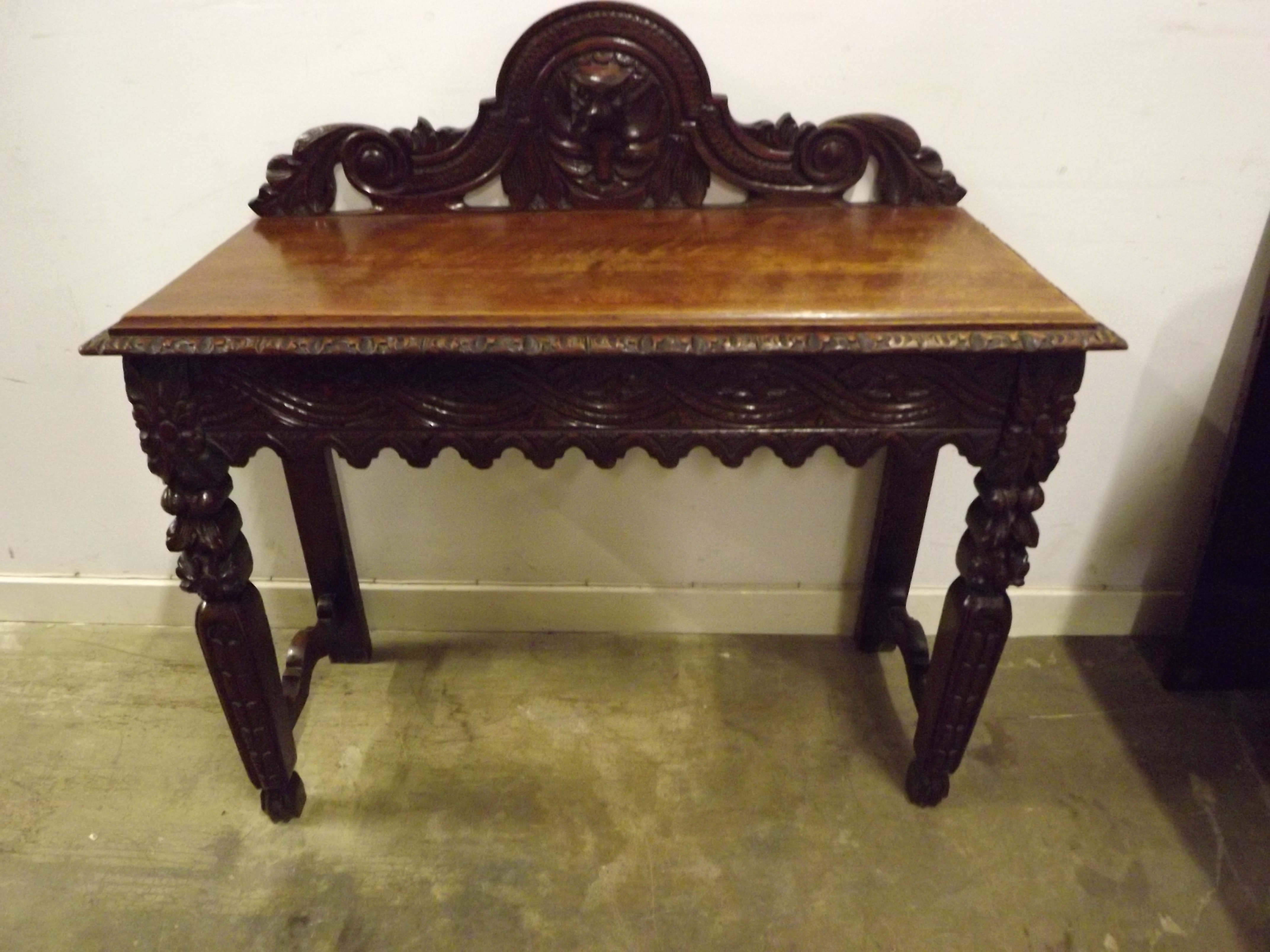 Victorian Carved Oak Hall Table / Side Server c.1899