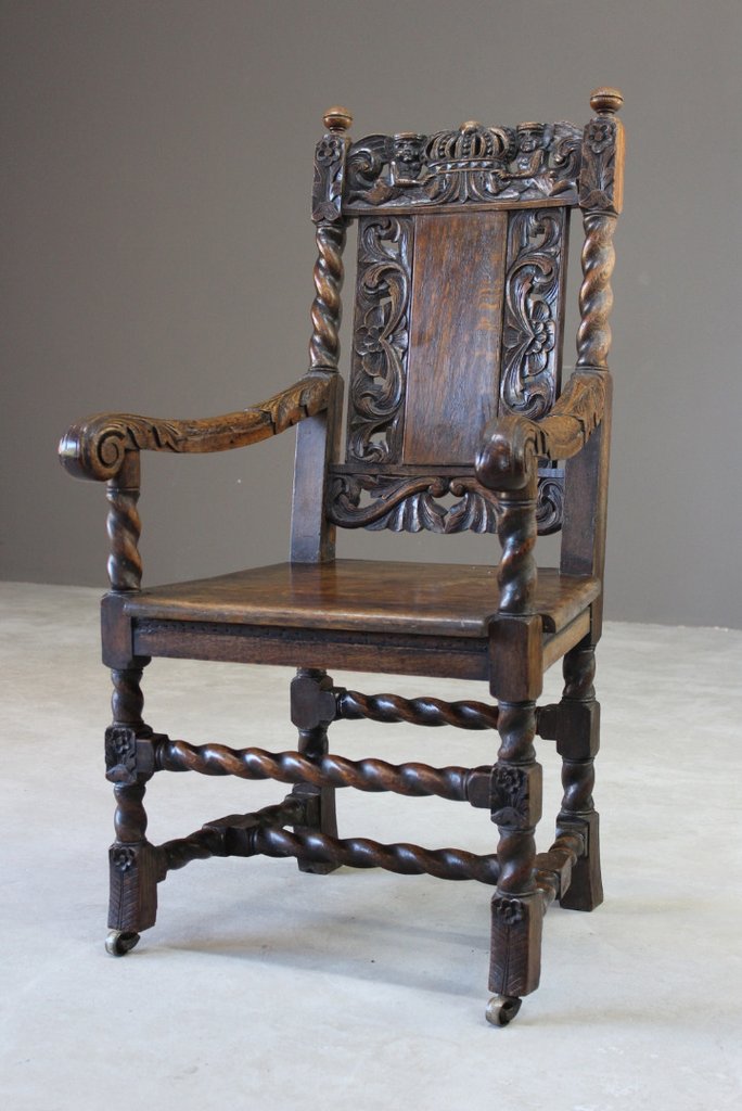 Victorian Carved Oak Open Arm Chair