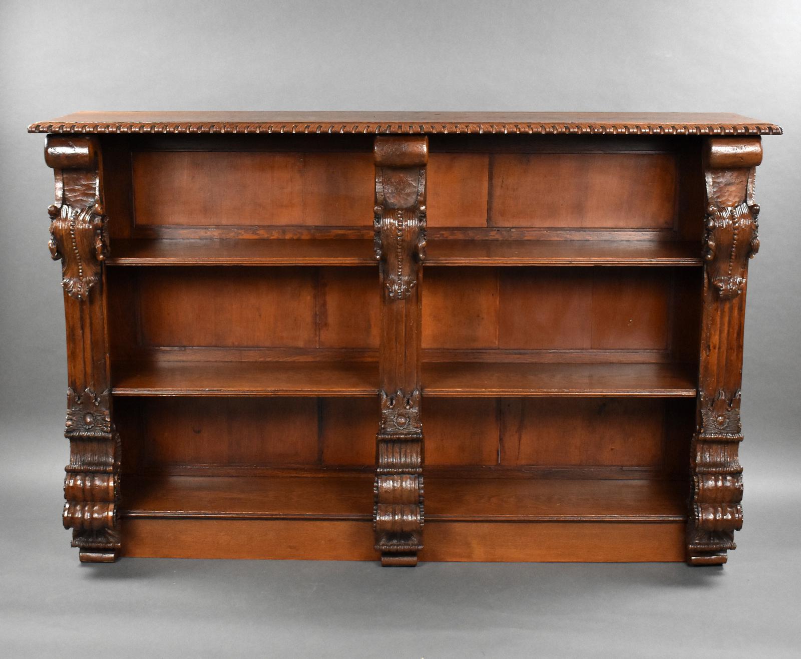 Victorian Carved Oak Open Bookcase