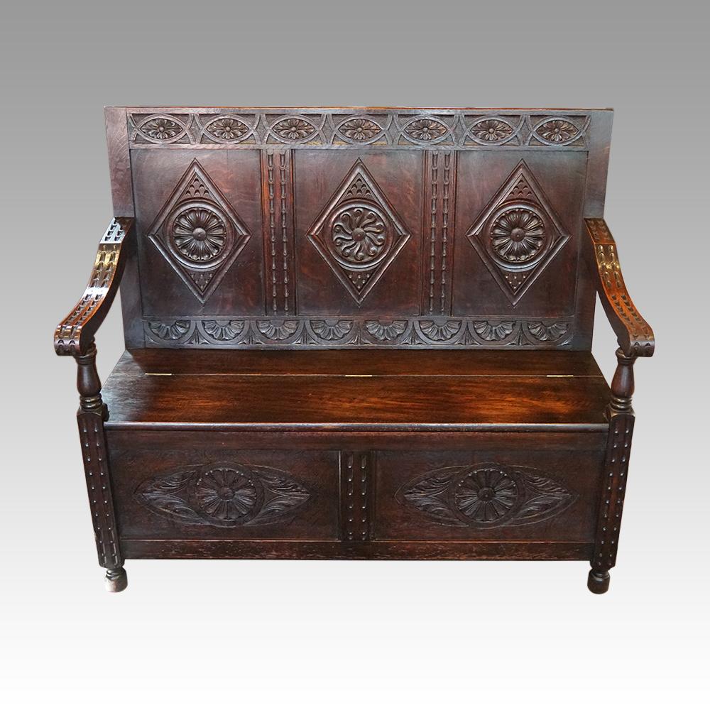 Victorian Carved Oak Settle (1 of 8)