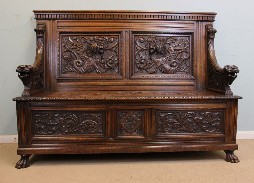 Victorian Carved Oak Settle / Hall Bench (1 of 1)
