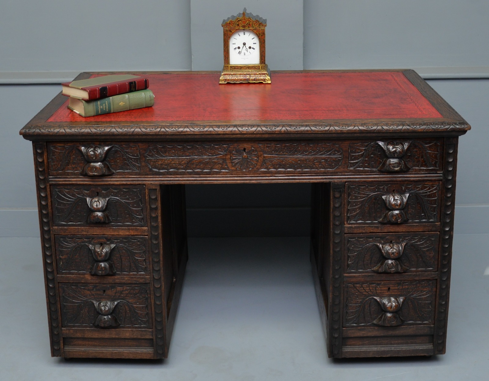 Victorian Carved Solid Oak Pedestal Desk