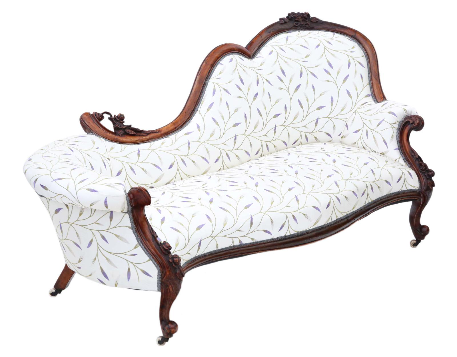 Victorian Carved Walnut Chaise Longue or Sofa c.1870