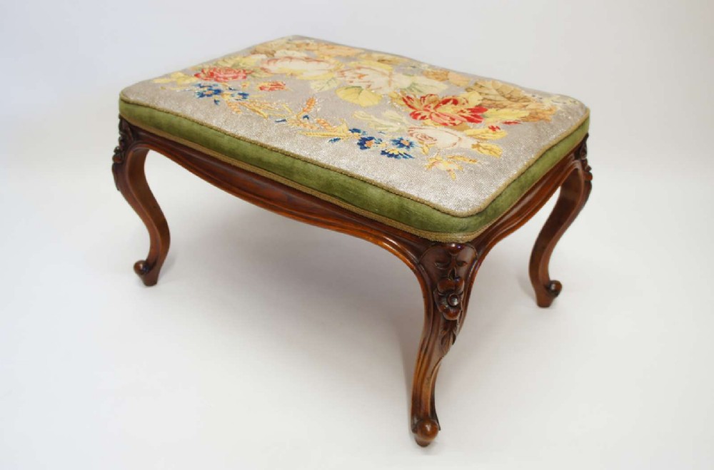 Victorian Carved Walnut Needlepoint Centre Stool or Salon Stool