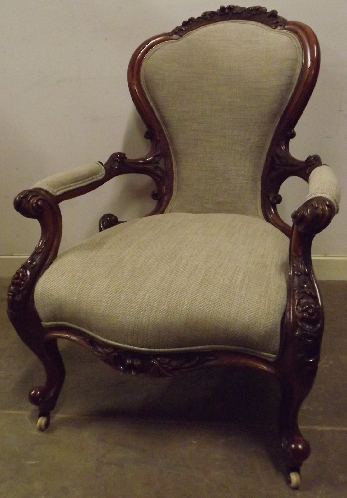 Victorian Carved Walnut Show-Frame Armchair c.1860
