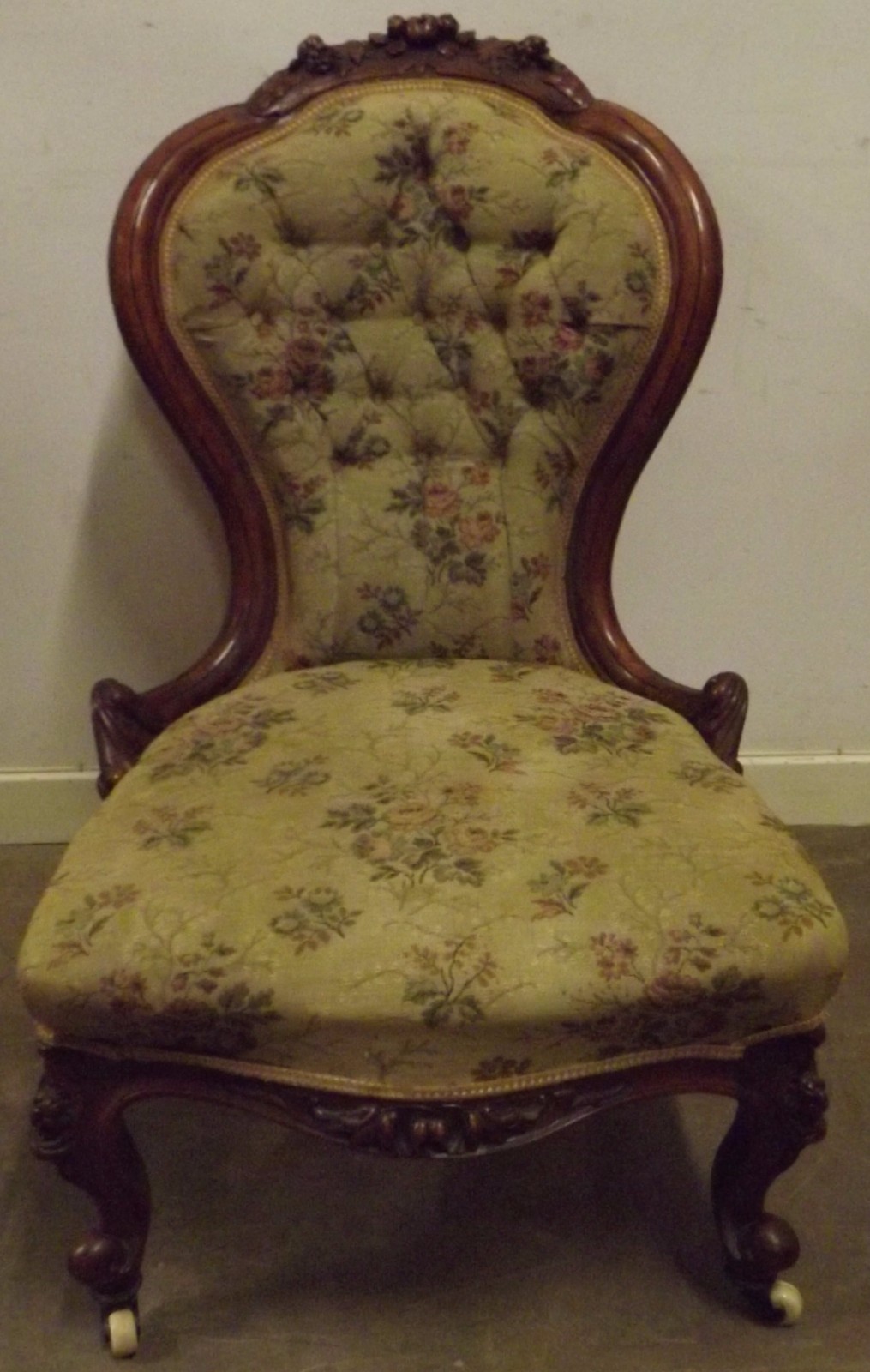Victorian Carved Walnut Show-Frame Nursing Chair c.1860