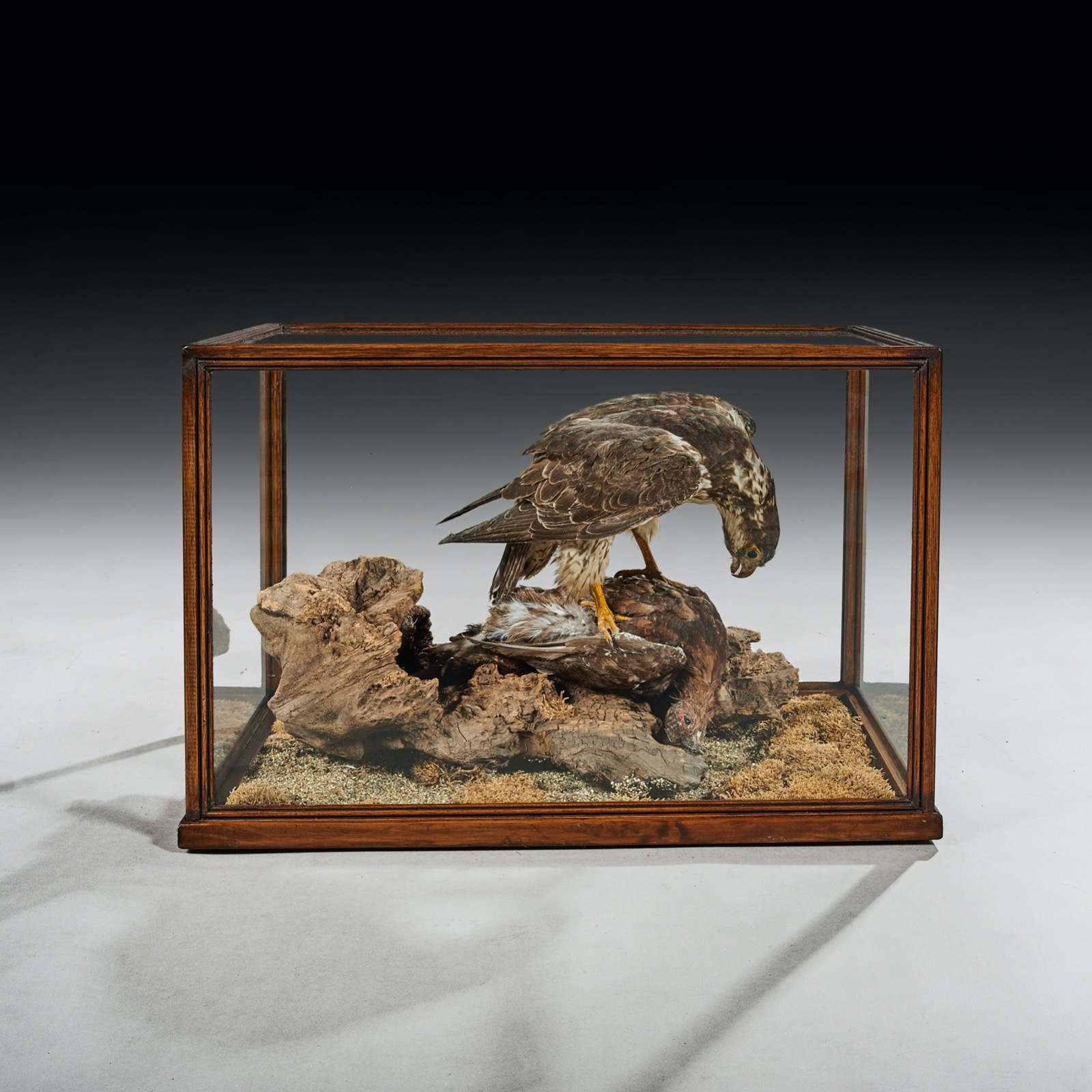 Victorian Cased Taxidermy Hawk with Grouse as Prey