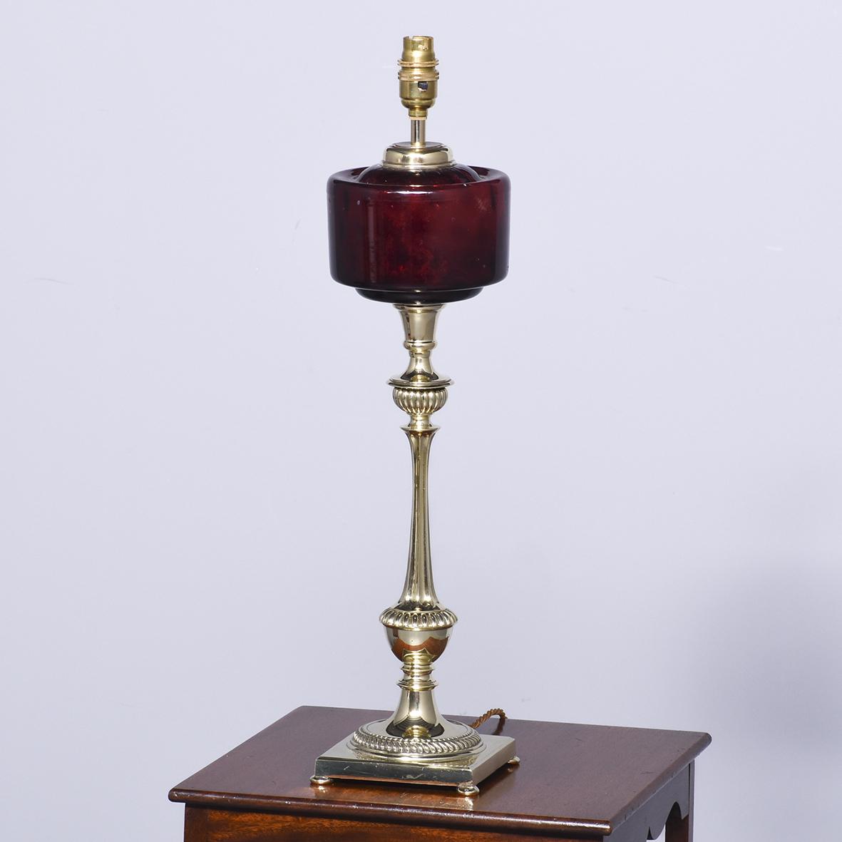 Victorian Cast Brass and Ruby Glass Oil Lamp Converted to an Electrical Lamp