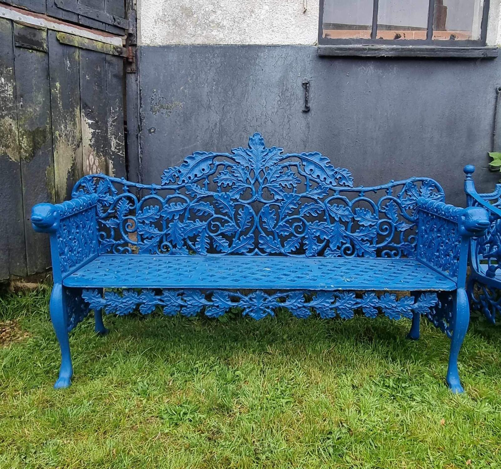 Victorian Cast Iron Garden Bench in a Stunning Blue