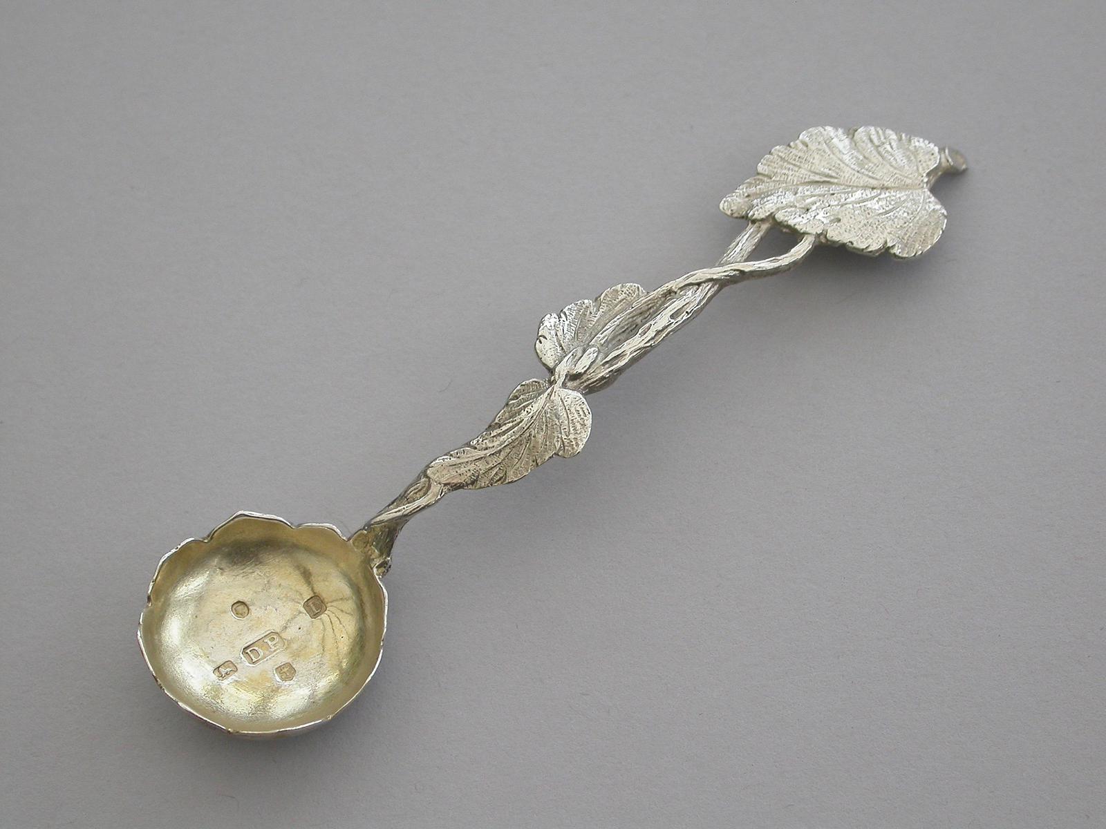 Victorian Cast Silver Naturalistic Salt Spoon by David Pettifer, Birmingham, 1858