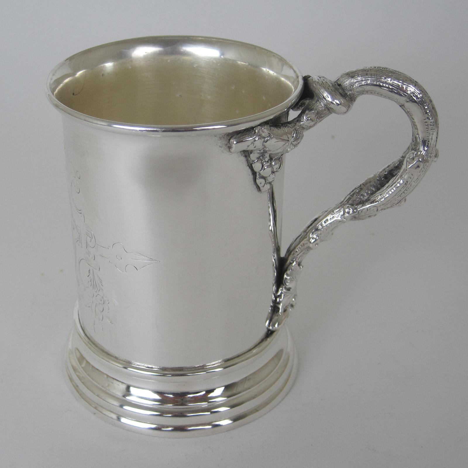Victorian Cast Silver Plated Childs Mug with Engraved Empty Floral Cartouche