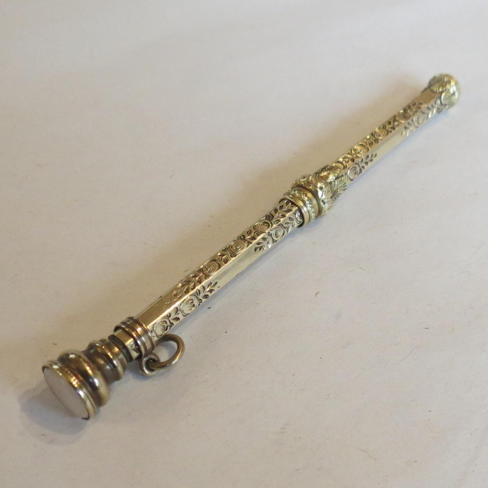 Victorian Chased Gold Pencil with Moonstone Terminal