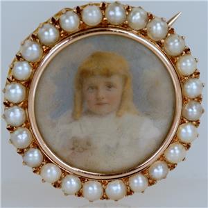 Victorian Child Portrait 18ct Gold Brooch / Pendant Antique Pearl & Hair Locket