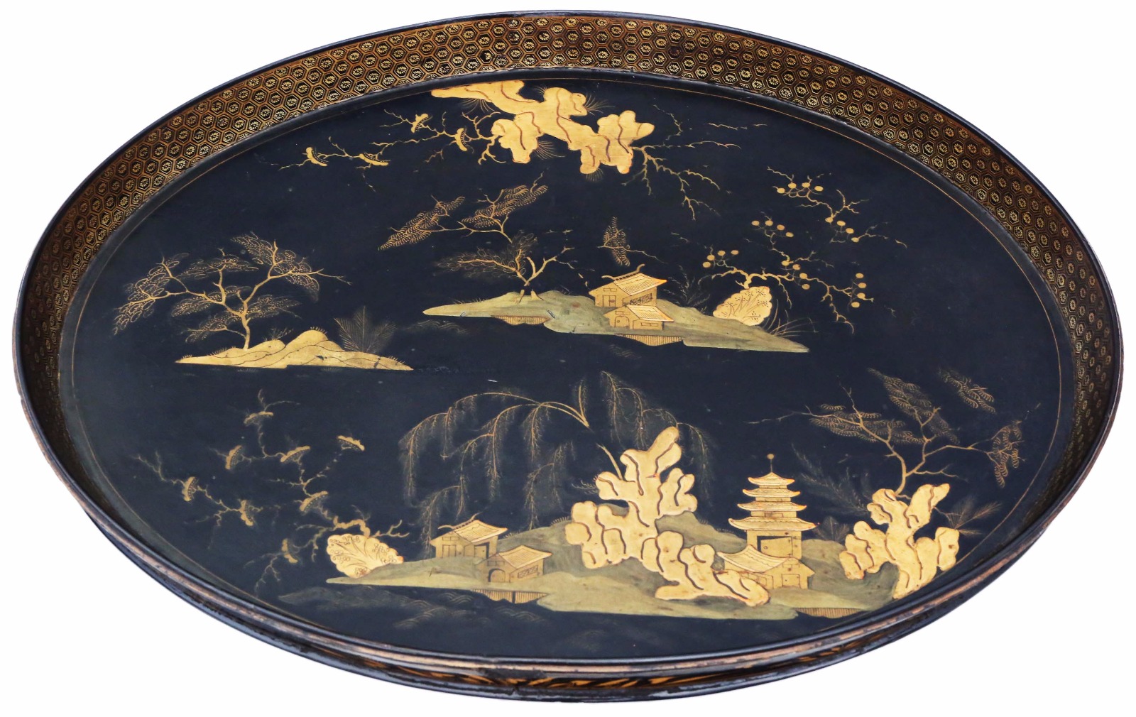 Victorian Chinoiserie Black Lacquer Serving Tray (1 of 1)