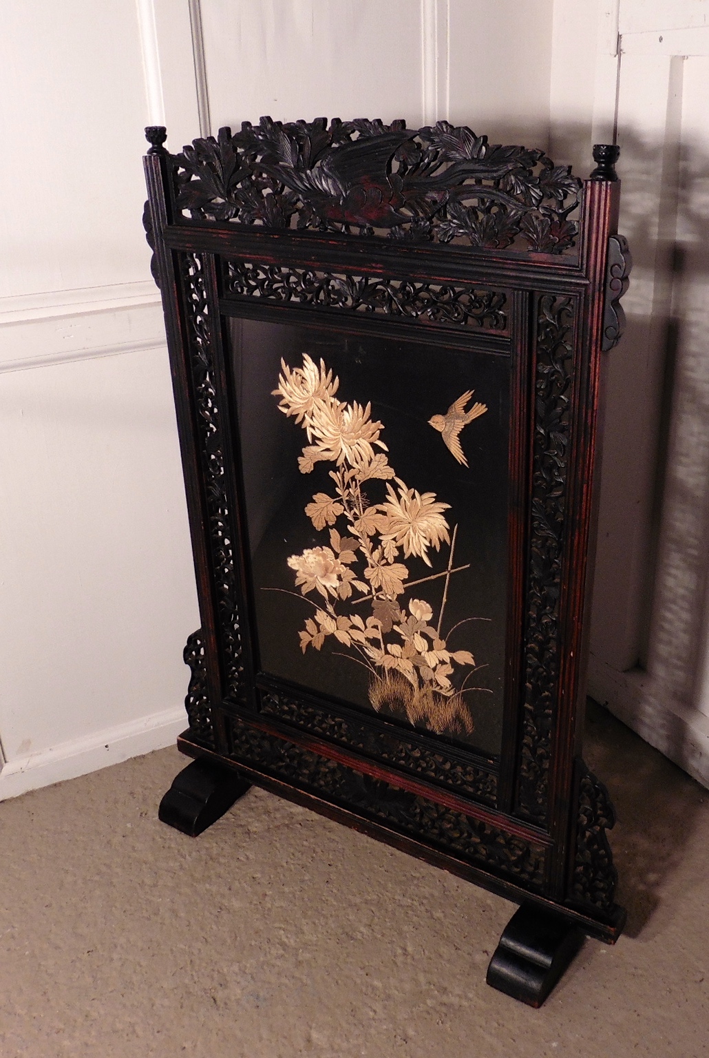Victorian Chinoiserie Silk & Mahogany Fire Screen