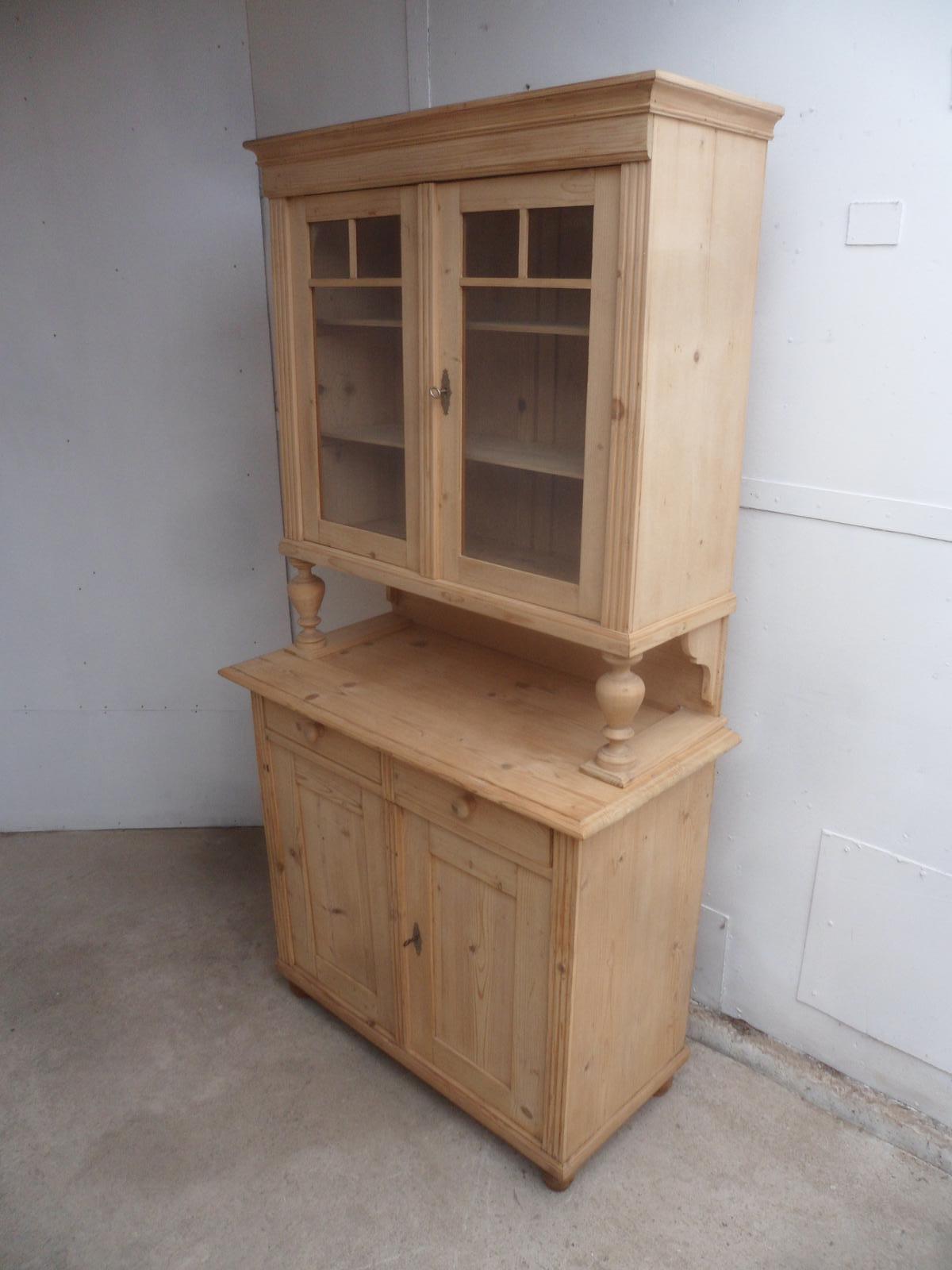 Victorian Columned Antique Pine 2 Door Kitchen Dresser to wax / paint
