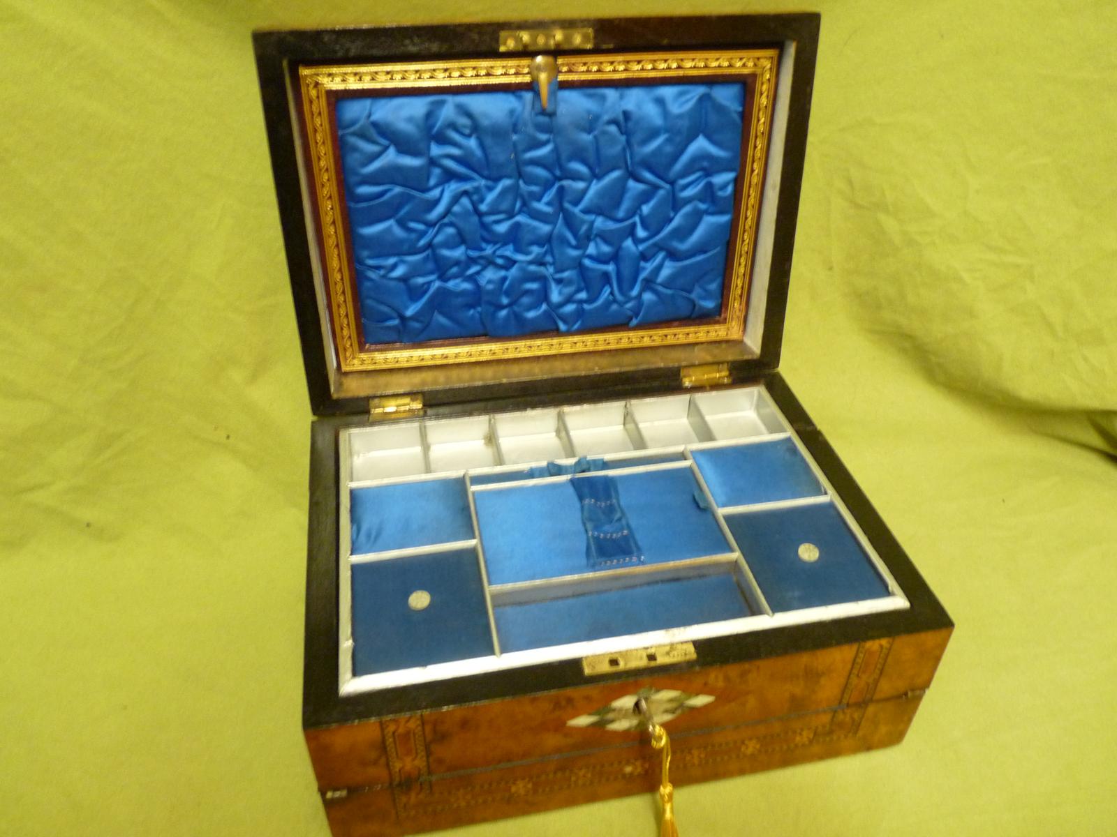 Victorian Combination Inlaid Walnut Jewellery / Writing Box c.1875