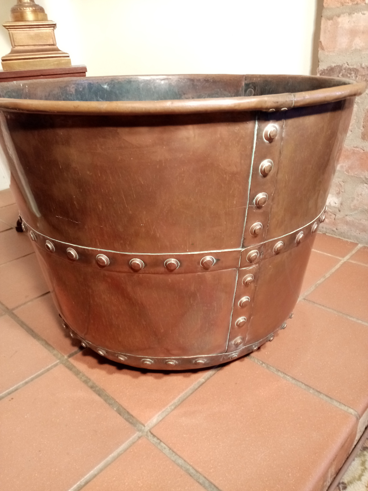 Victorian Copper Riveted Log Bin / Basket / Cauldron