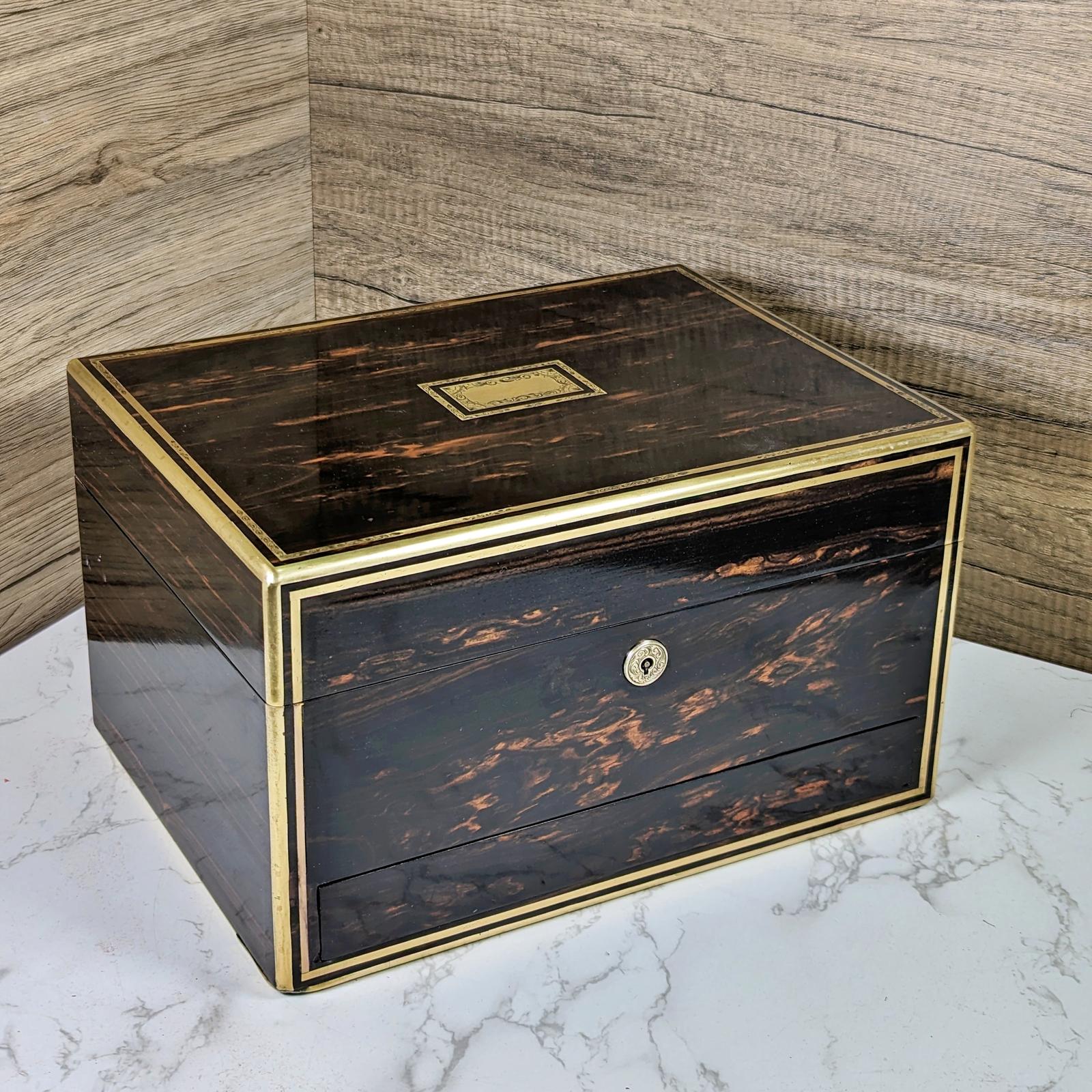 Victorian Coromandel & Brass Inlaid Jewellery Box