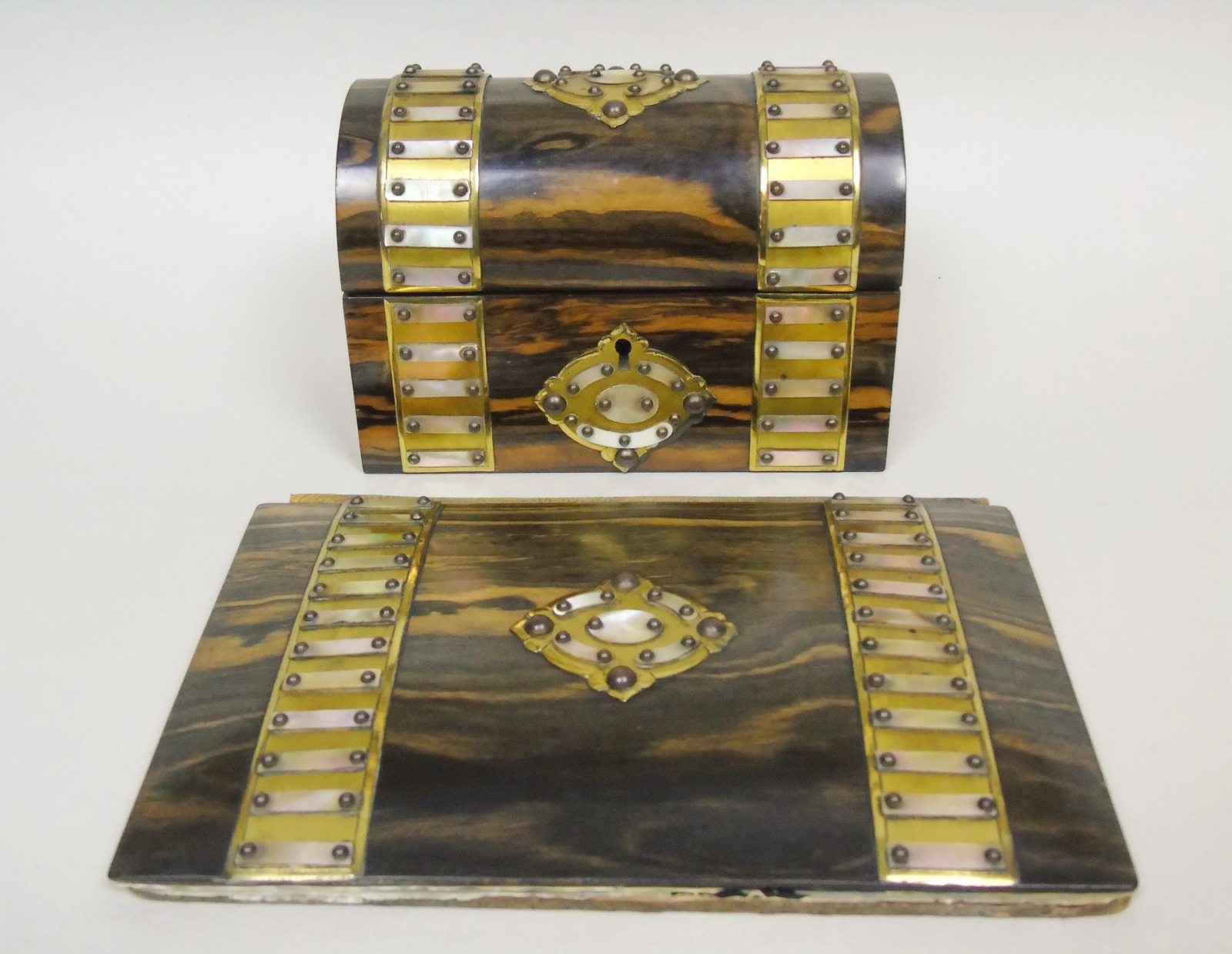 Victorian Coromandel Dome Top Stationary Box & Matching Folder