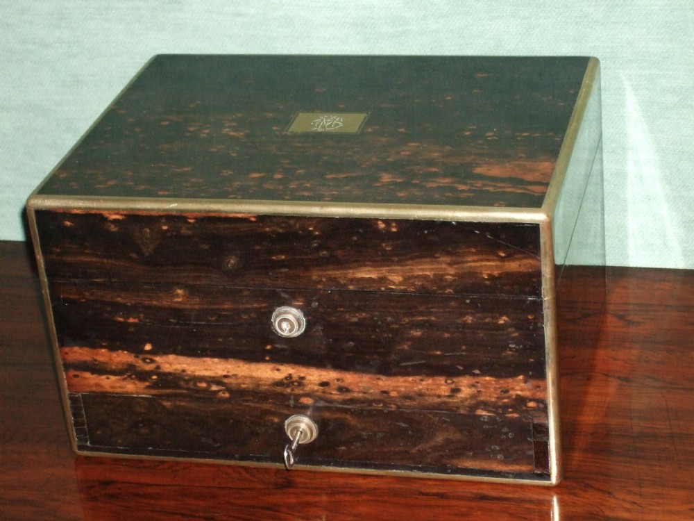 Victorian Coromandel Dressing & Jewel Box with Silver Top Bottles 1866