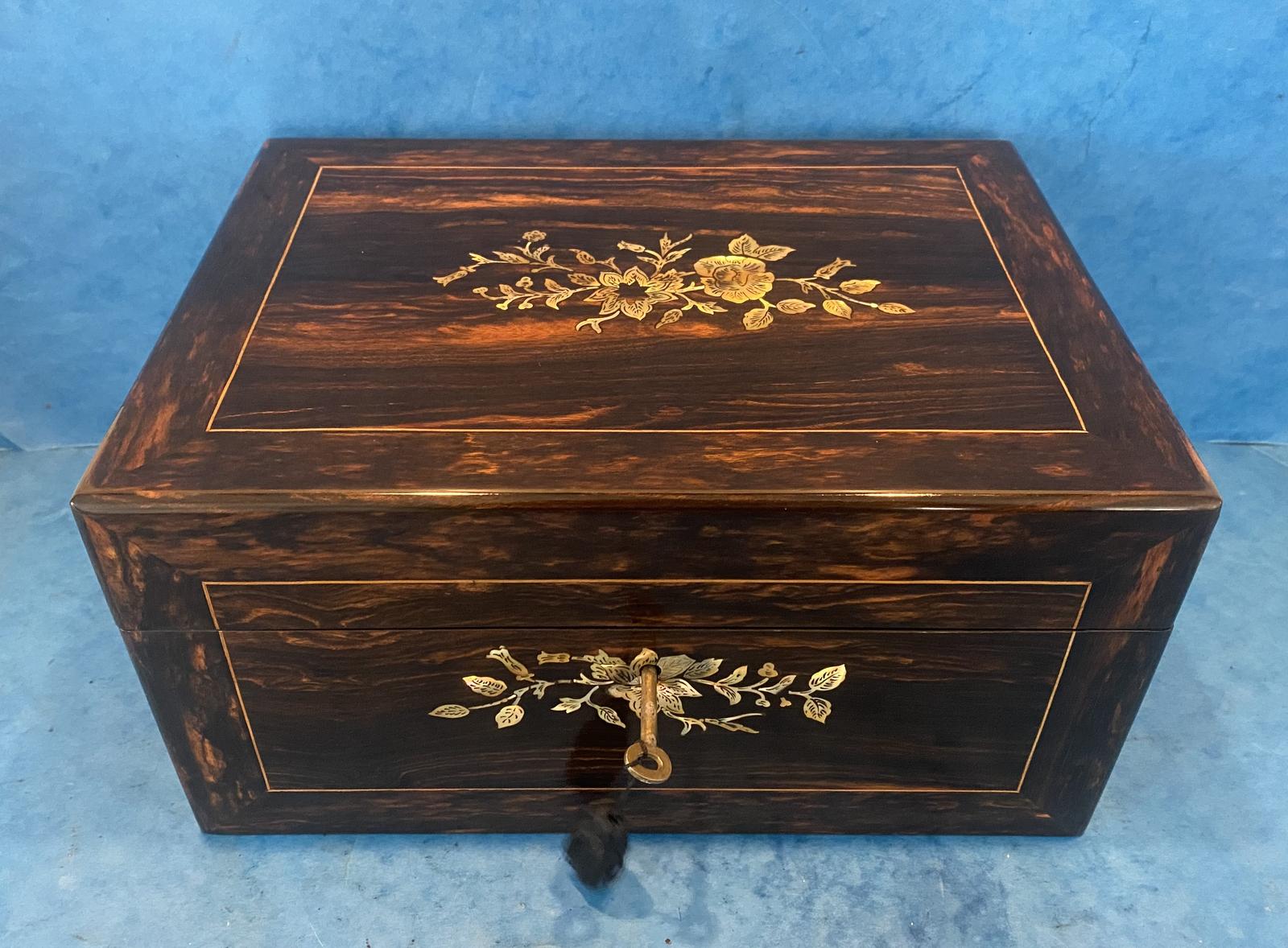 Victorian Coromandel Jewellery Box Featuring Mother of Pearl Inlay