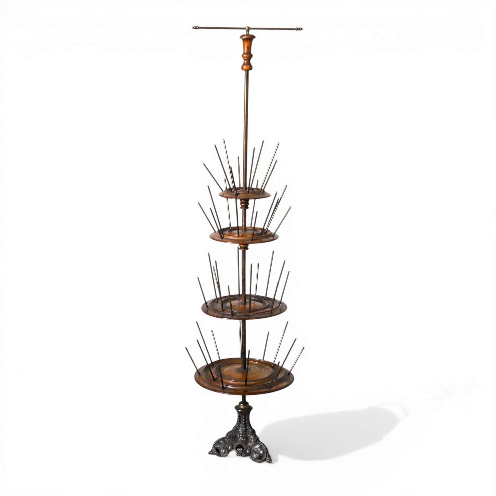 Victorian cotton reel display tree, circa 1890, with four adjustable tiers and rich patination - a rare survivor of late 19th‑century English shop fittings
