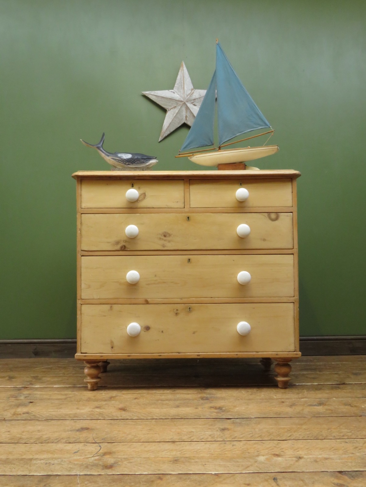 Victorian Country Pine Chest of Drawers with White Ceramic Knobs