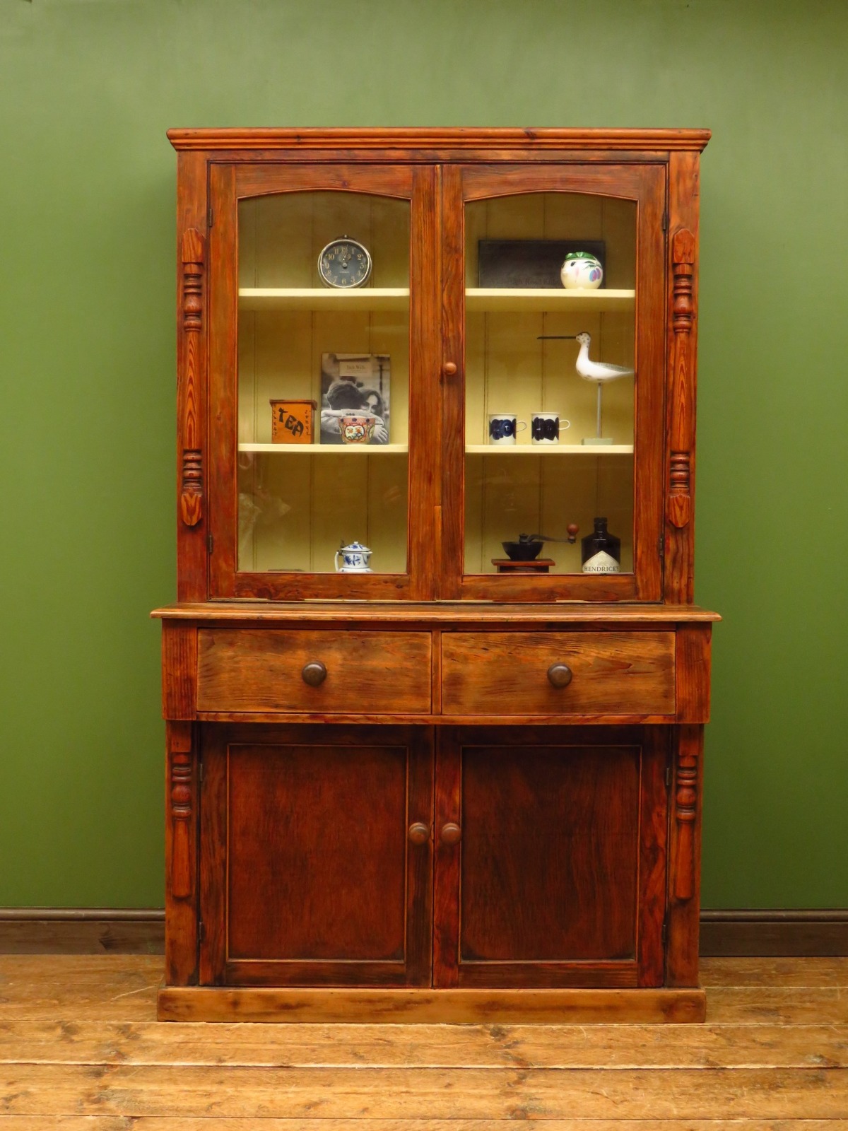 Victorian Country Pine Glazed Dresser with Yellow Interior, Kitchen Cabinet
