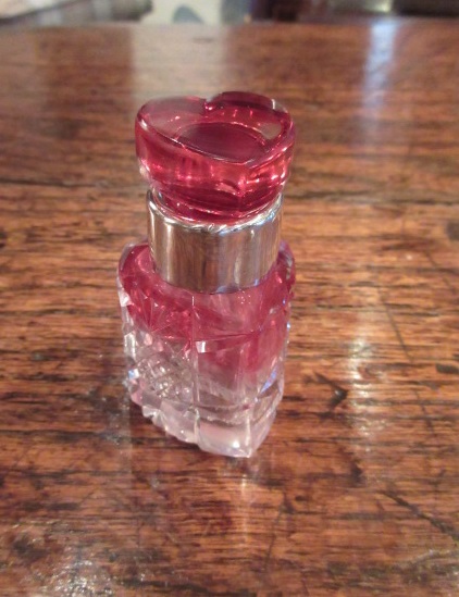 Victorian Cranberry Flashed & Silver Heart Shaped Scent
