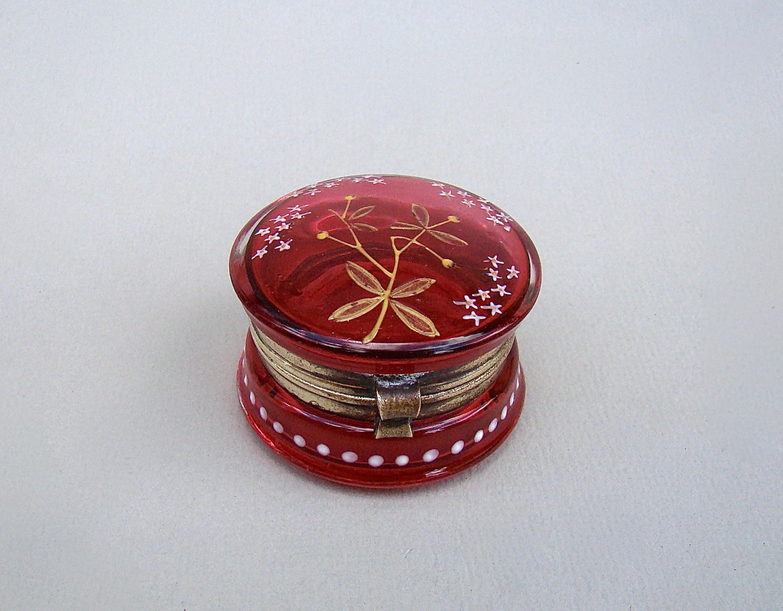 Victorian Cranberry Glass Enamelled Trinket Box c.1890
