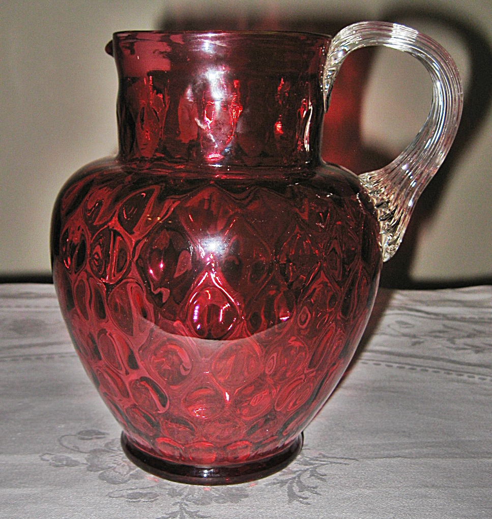 Victorian Cranberry Glass Honeycomb Pattern Jug