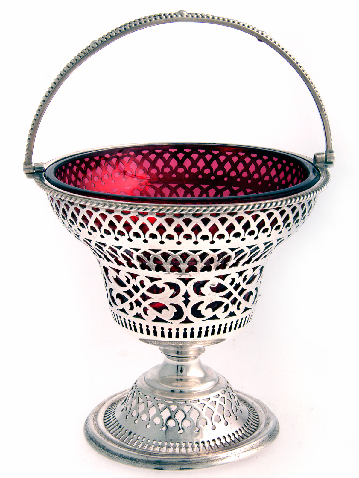 Victorian Cranberry Glass Silver Plated Sugar Basket by Elkington